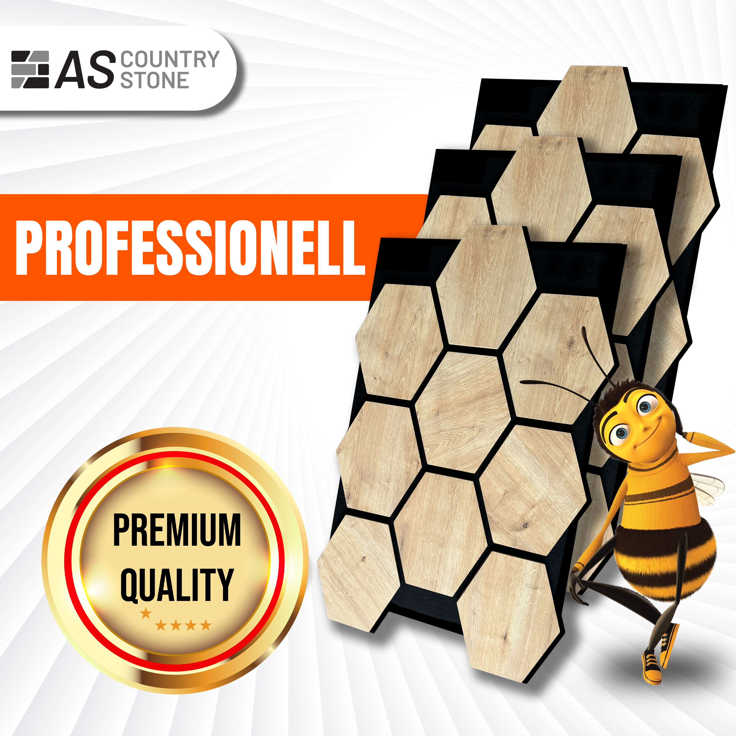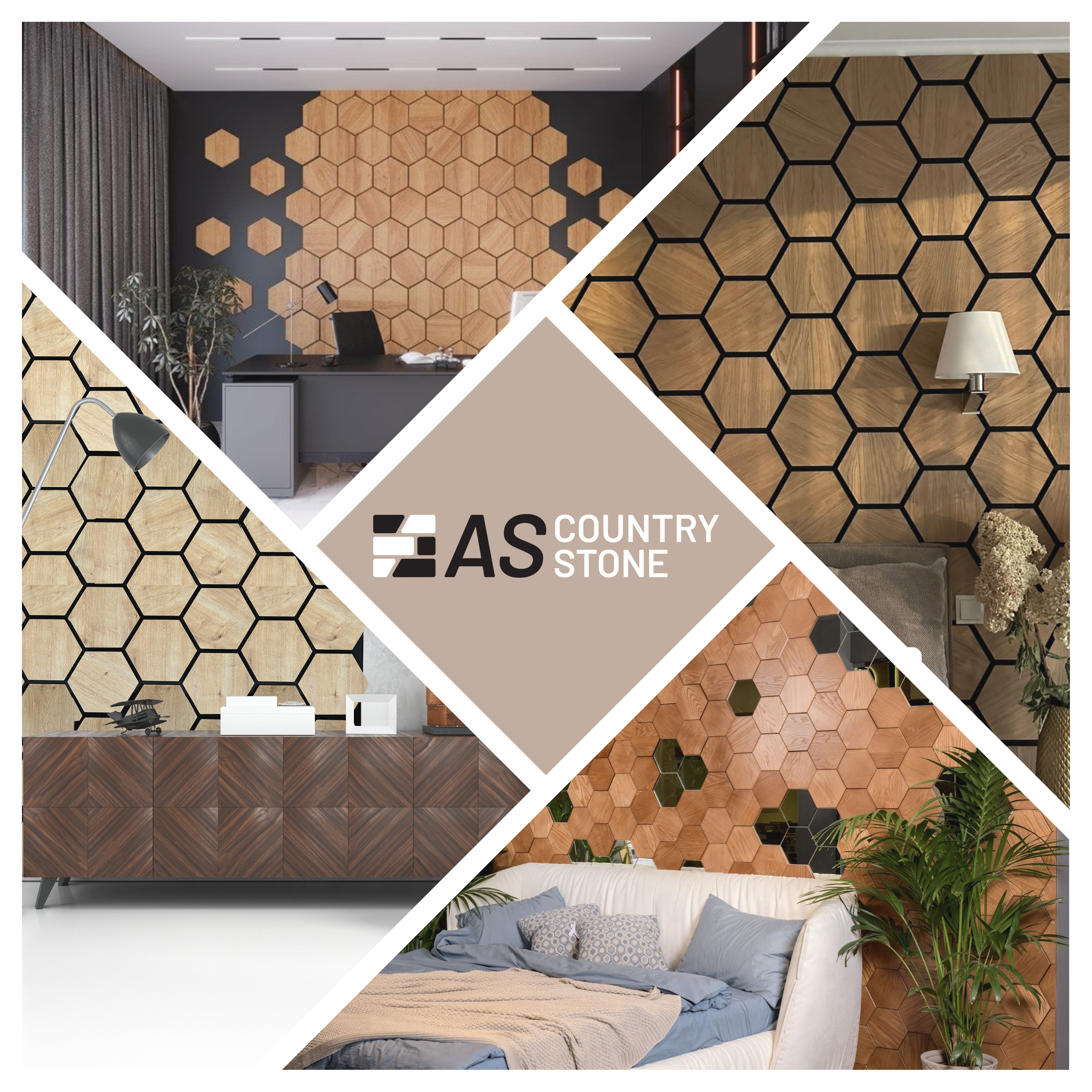 Entdecken Sie die elegante Lösung für verbesserte Raumakustik und stilvolles Design mit unserem "Hexagon Akustikpaneel Karina" von AS Country Stone.
