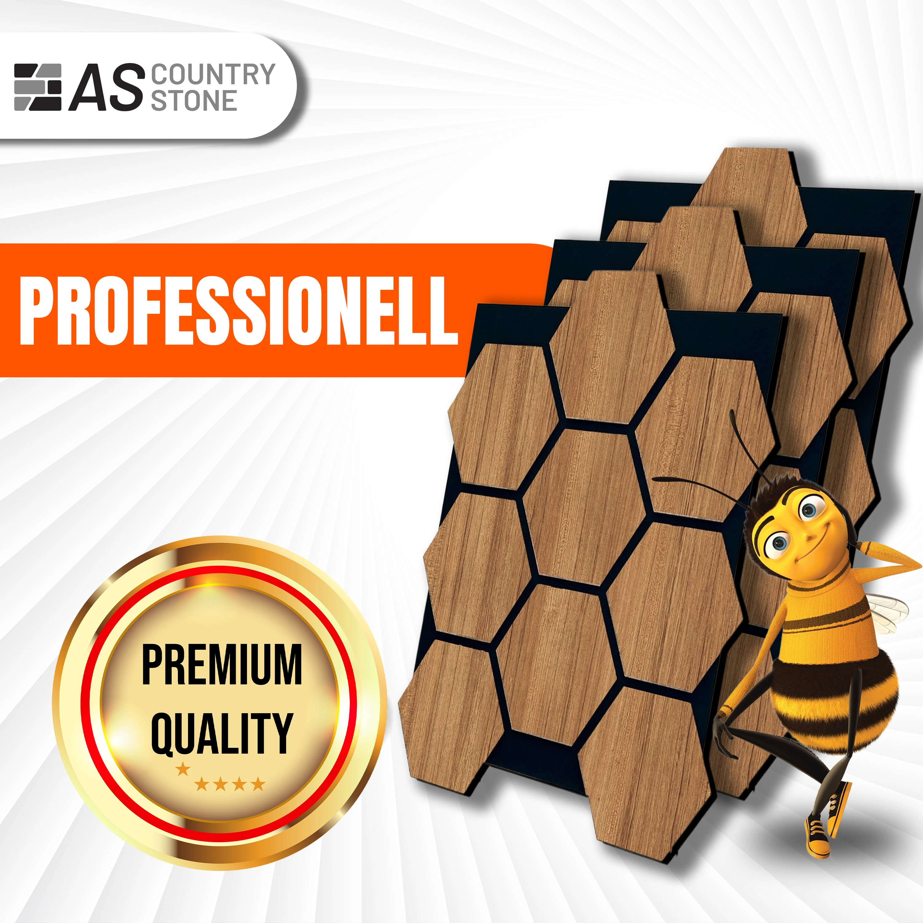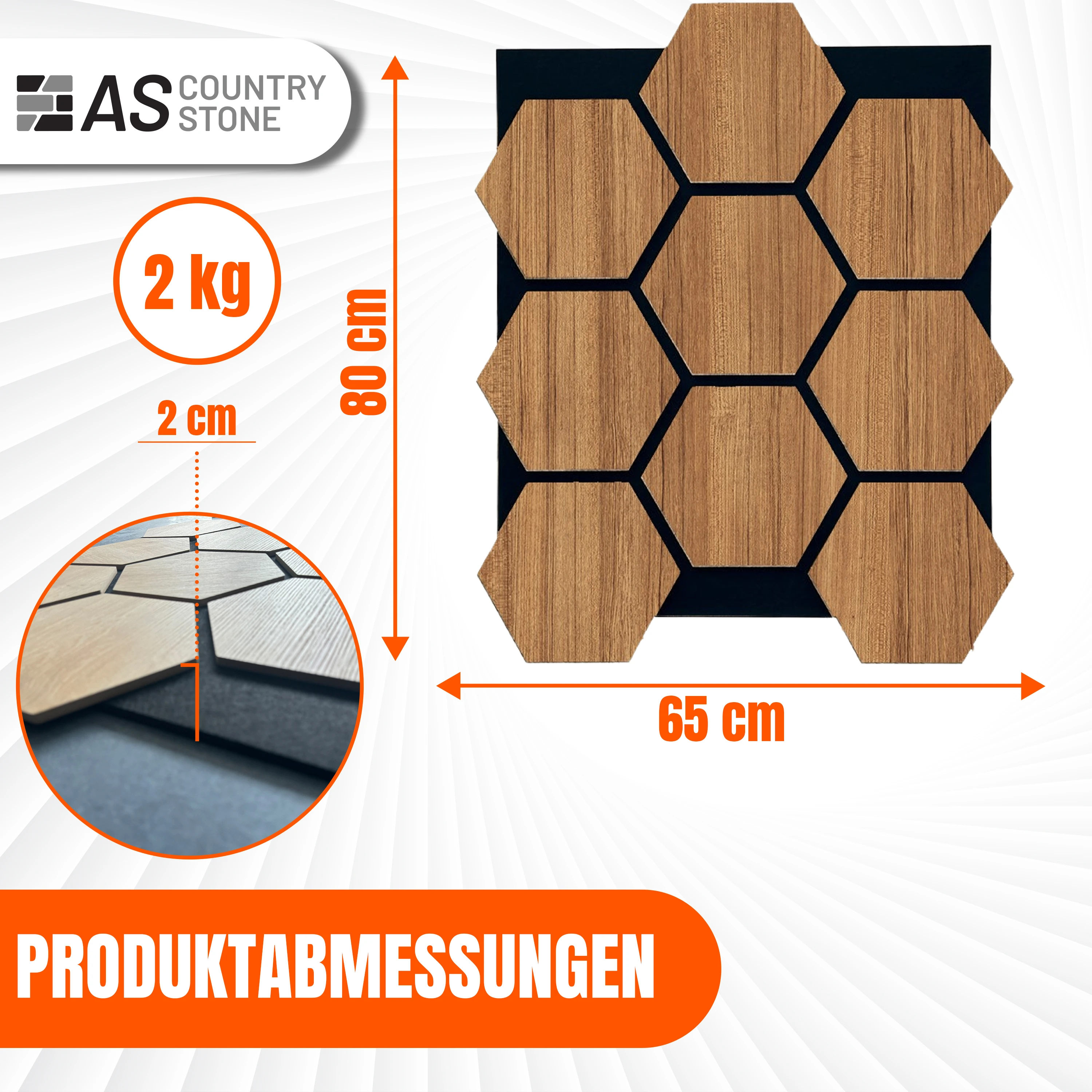 Erleben Sie den neuesten Trend in der Raumgestaltung mit dem "Hexagon Akustikpaneel Teak" von AS Country Stone. Dieses einzigartige Wandpaneel verbindet funktionale Akustikverbesserung mit einer ansprechenden ästhetischen Note.