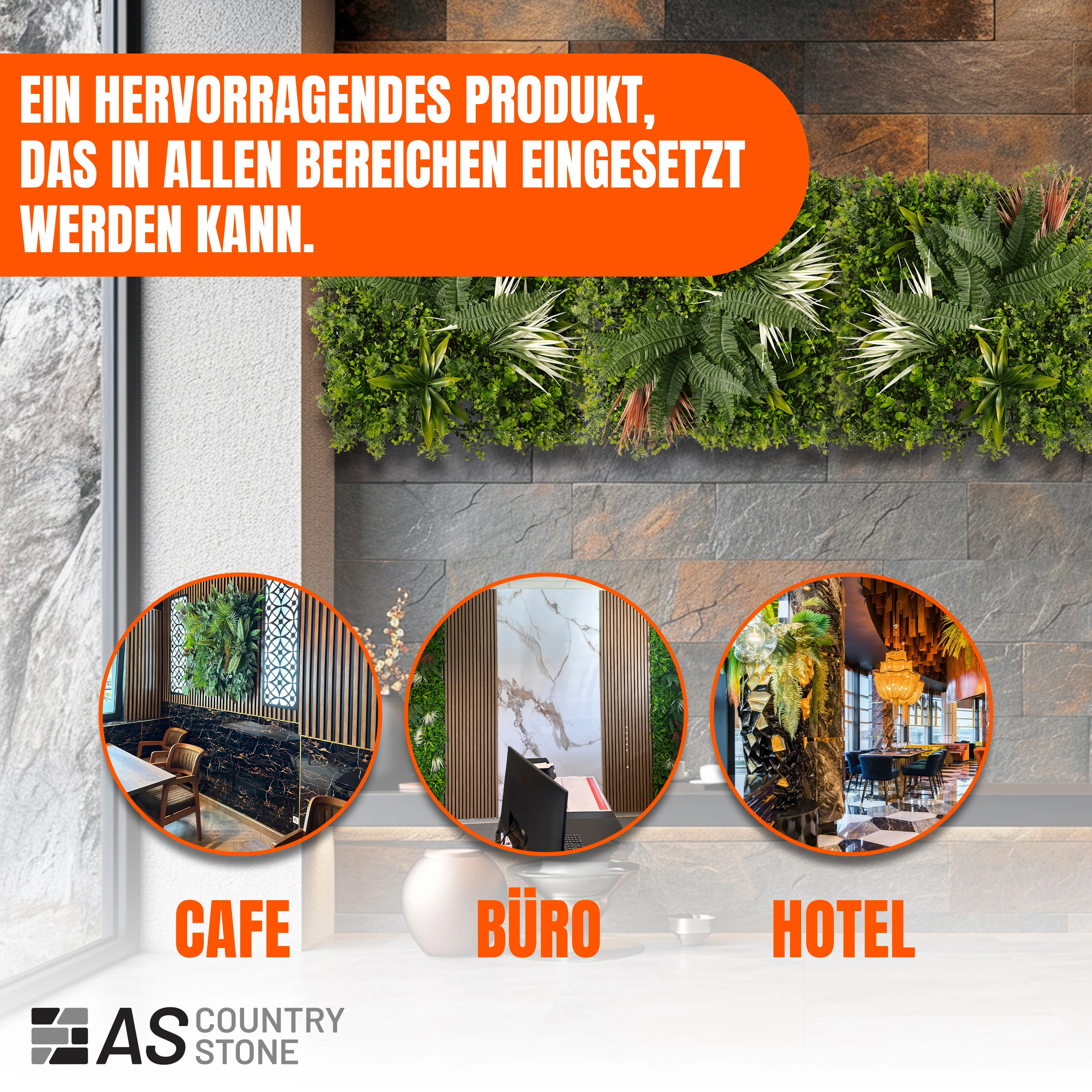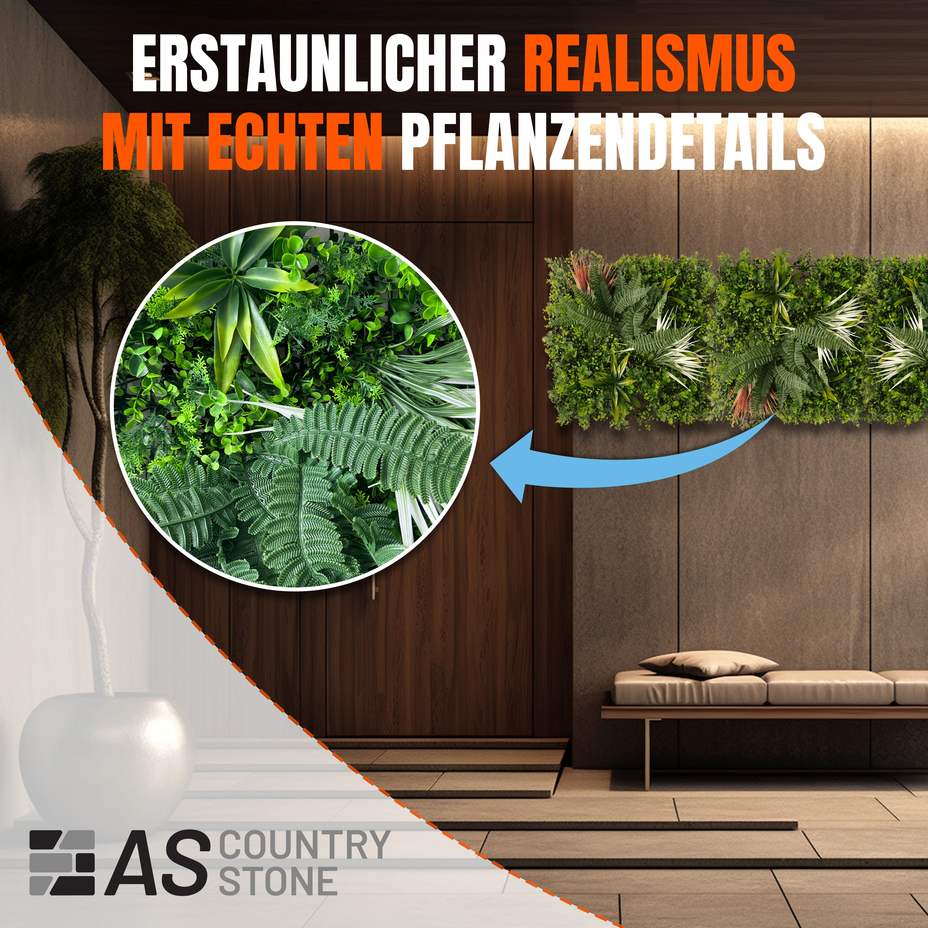 Entscheiden Sie sich für die Kunsthecke "Wald" von AS Country Stone und bringen Sie ein Stück Natur in Ihre vier Wände, ohne sich um dessen Pflege sorgen zu müssen. Perfekt geeignet für alle, die einen grünen Touch in ihre Wohn- oder Arbeitsumgebung bringen möchten, ohne dabei auf Komfort zu verzichten.