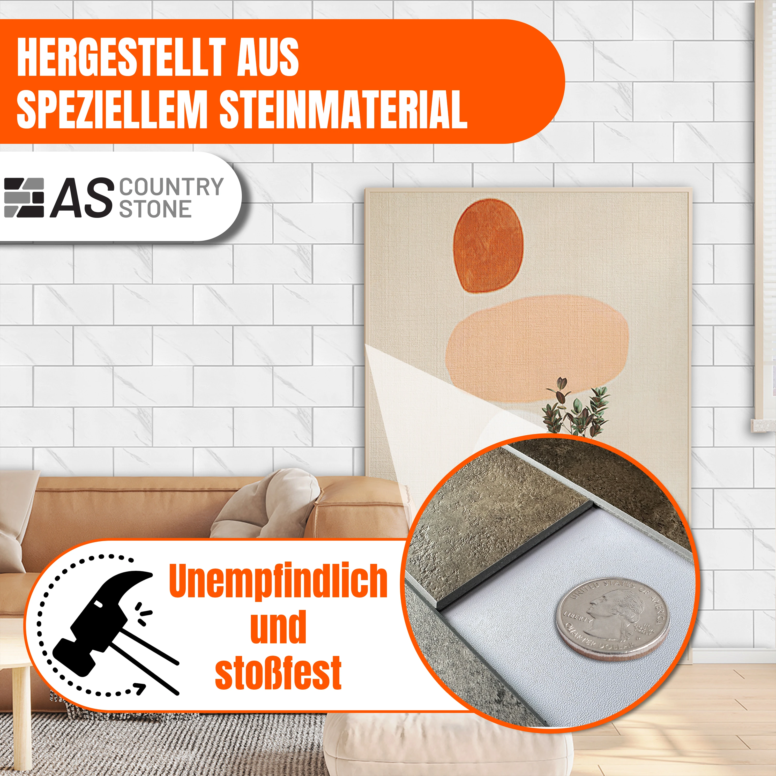 Unsere Mosaikfliese "WJS-210" von AS Country Stone in reiner Weißoptik vereint zeitlose Eleganz und moderne Ästhetik. Die rechteckigen Fliesen in strahlendem Weiß, akzentuiert durch feine graue Maserungen, schaffen eine luxuriöse und helle Atmosphäre in jedem Raum. Ideal für Wände in Badezimmern, Küchen oder Wohnbereichen, verleiht diese Fliese Ihrem Zuhause eine hochwertige und stilvolle Note. Die glatte Oberfläche sorgt für eine einfache Reinigung und hohe Langlebigkeit, während das ansprechende Design vielseitig einsetzbar ist und sich nahtlos in verschiedene Einrichtungsstile einfügt. Mit dieser weißen Mosaikfliese von AS Country Stone bringen Sie einen Hauch von Luxus und Raffinesse in Ihre vier Wände.