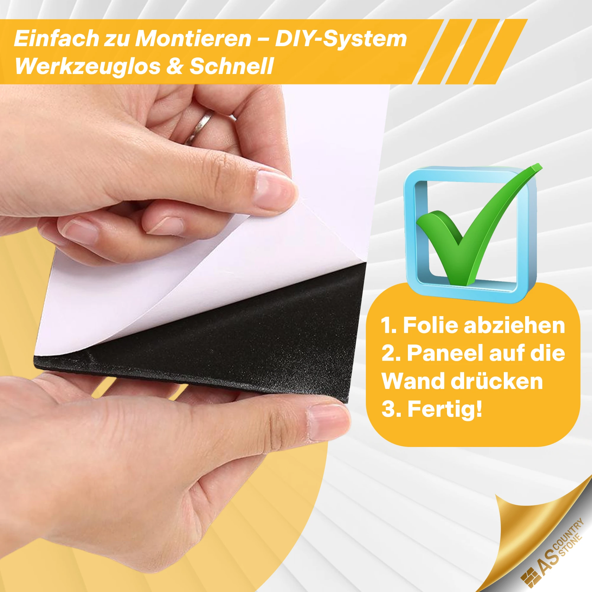 | Installation: | cutting with sturdy scissors/jigsaw/circular saw, each row is laid offset as with laminate, removing the foil on the backside, then pressing on the wall |